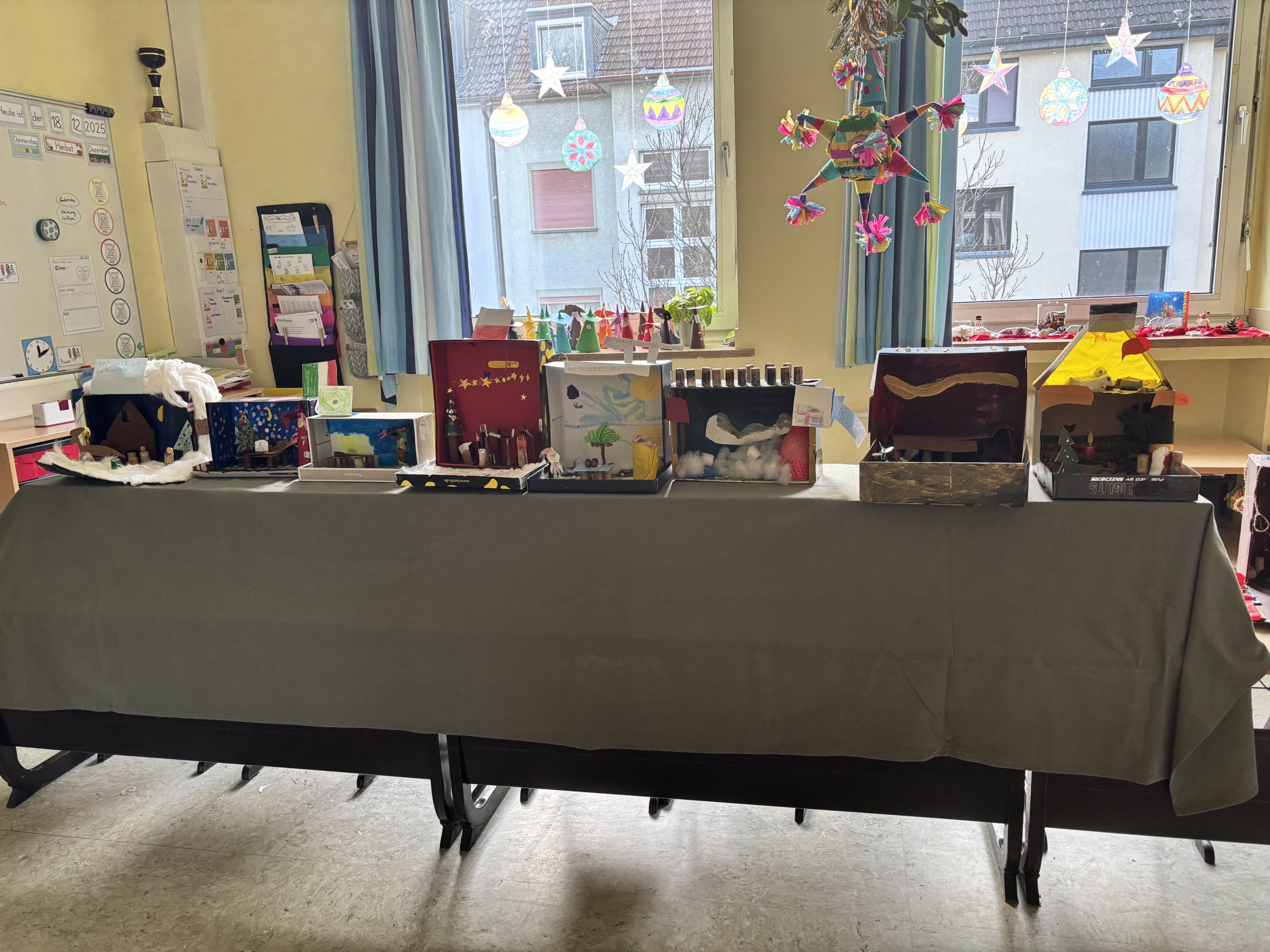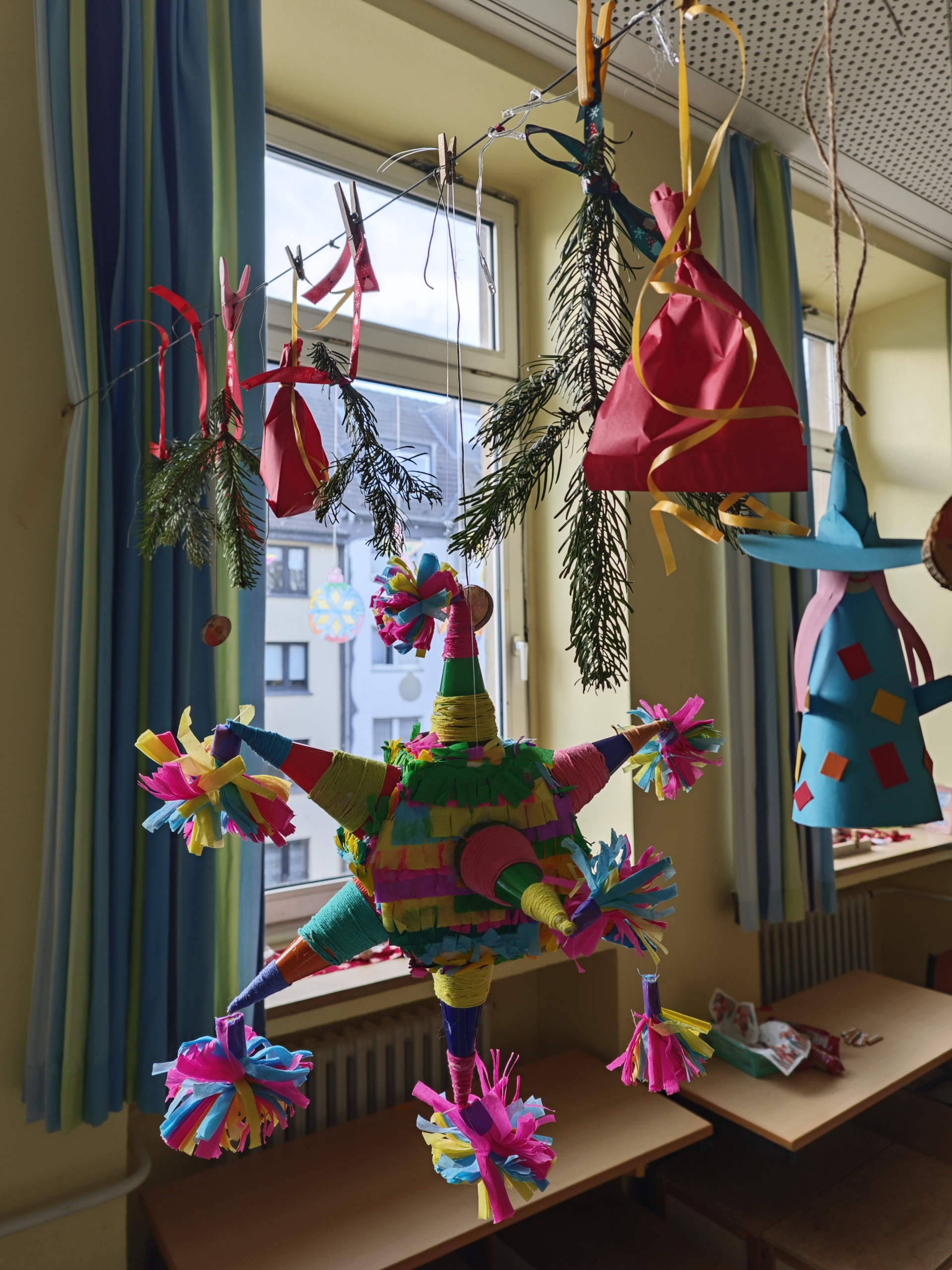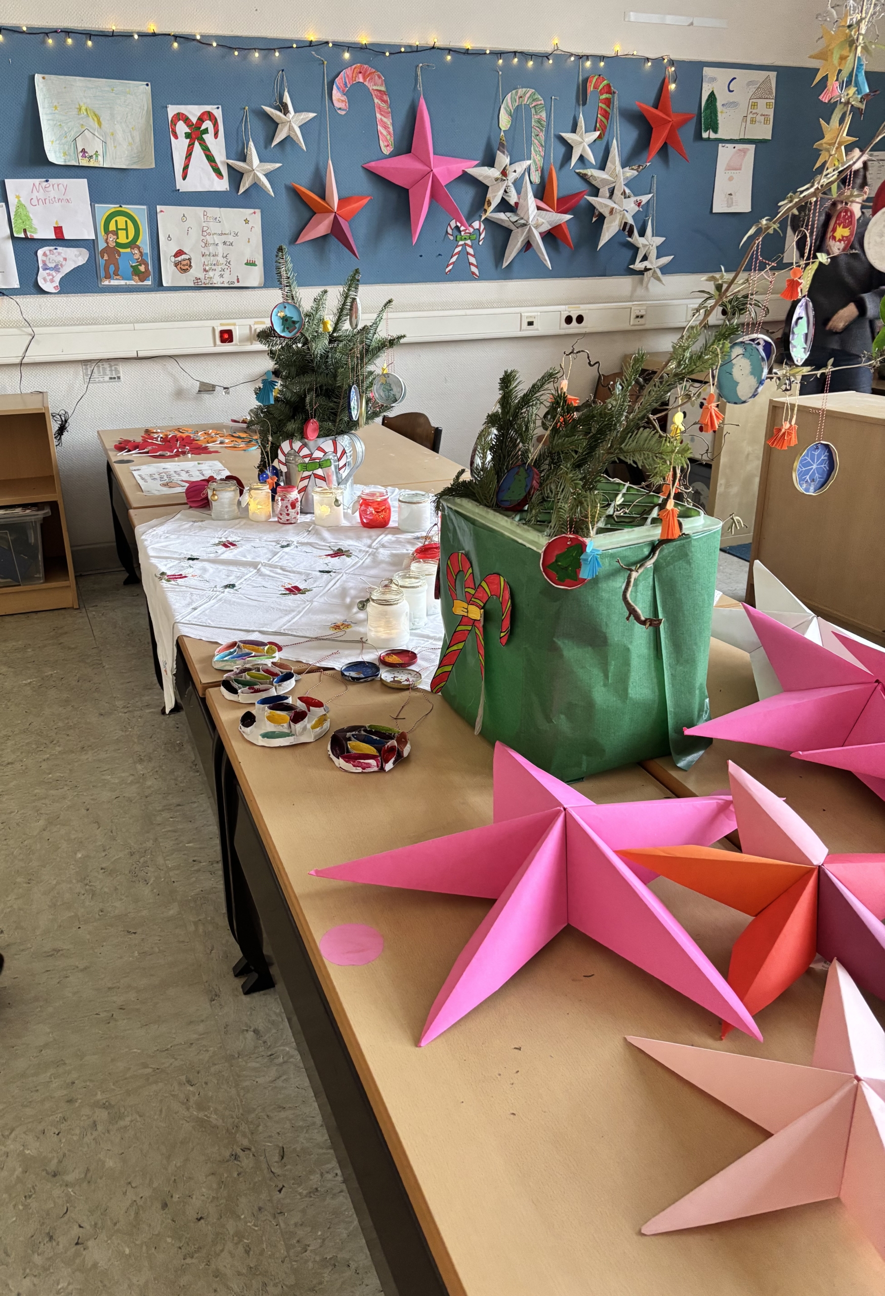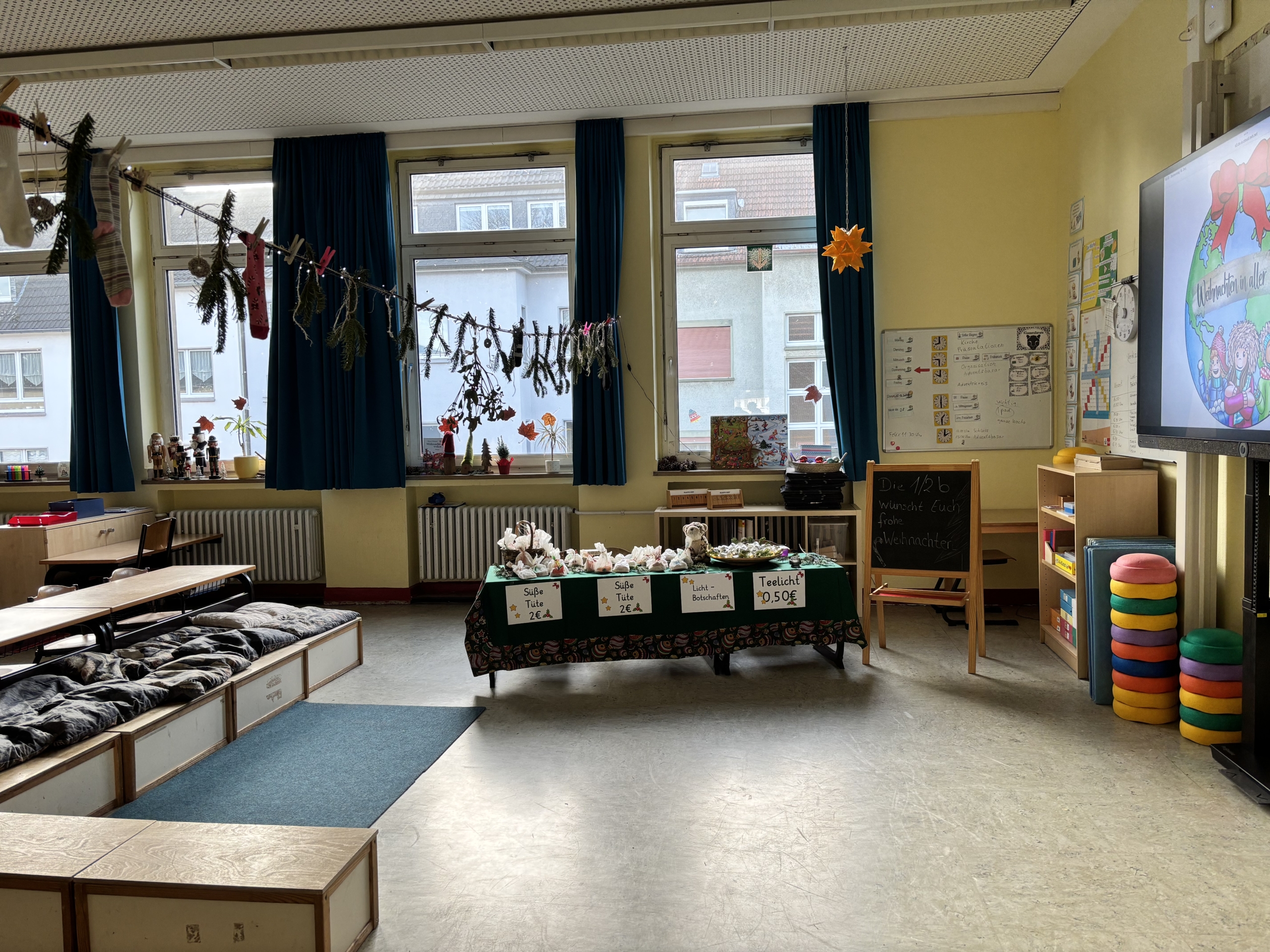 Zum Abschluss unsere Projektwoche „Weihnachten in aller Welt“ fand am Donnerstag vor den Weihnachtsferien unser Adventsbasar statt. Dieser Nachmittag hatte einen ganz besonderen Zauber: Zahlreiche BesucherInnen bestaunten und erwarben die von den Kindern gebastelten Weihnachtsartikel oder besuchten eine Tanz- und Musikaufführung. Weihnachtsquiz, Bastelangebot, Fotobox sowie ein Sportangebot im Bewegungsraum waren weitere weihnachtliche Aktionen. Der Basar endete mit einem gemeinsamen Singen auf dem Schulhof. So kurz vor Weihnachten mit Waffelduft, Heißgetränk und der Familie in der Schule sein, ist einfach besonders! 💫